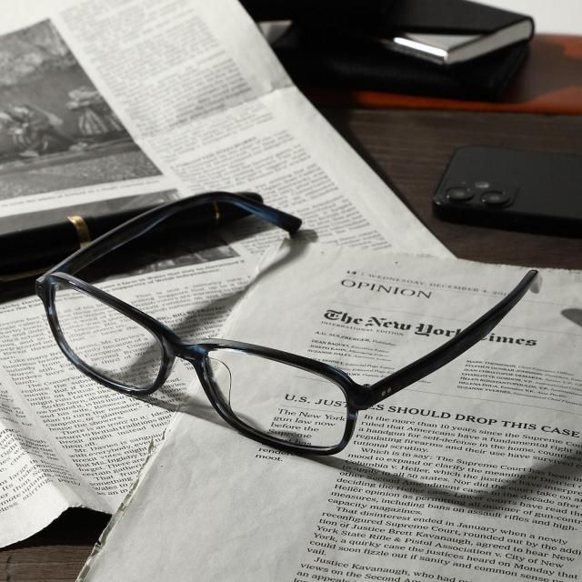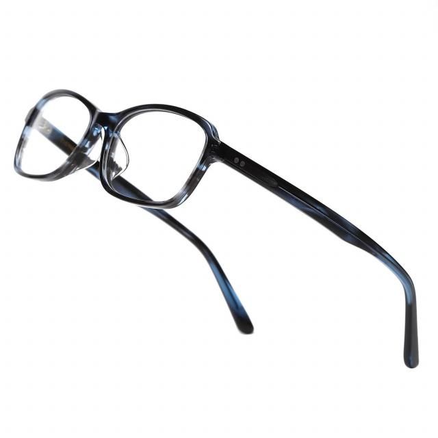 伊達メガネ メンズ 似合う 選び方 おしゃれ 伊達眼鏡 とは コーデ ファッション 仕事 ビジネス レンズ | やや小さめ〜ふつうサイズ 艶感アセテートフレーム ブルーカラー EVERNEVER