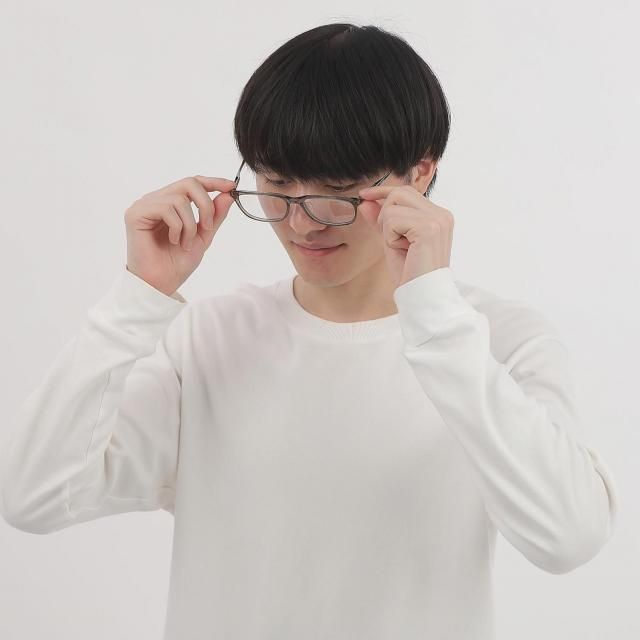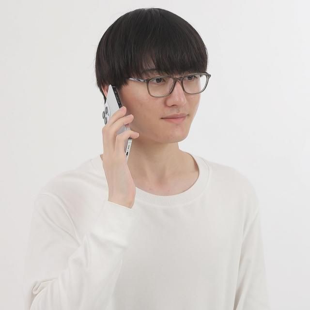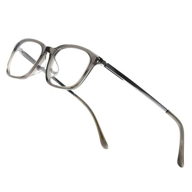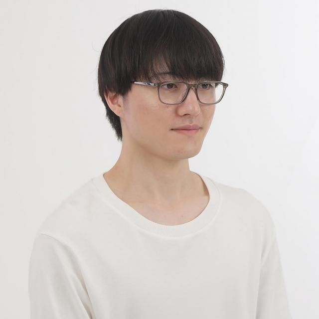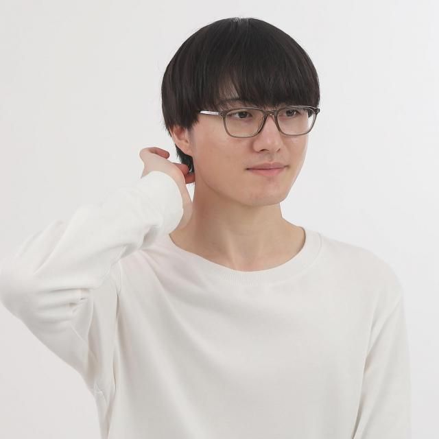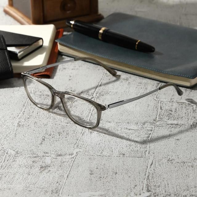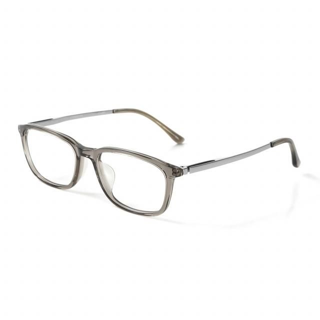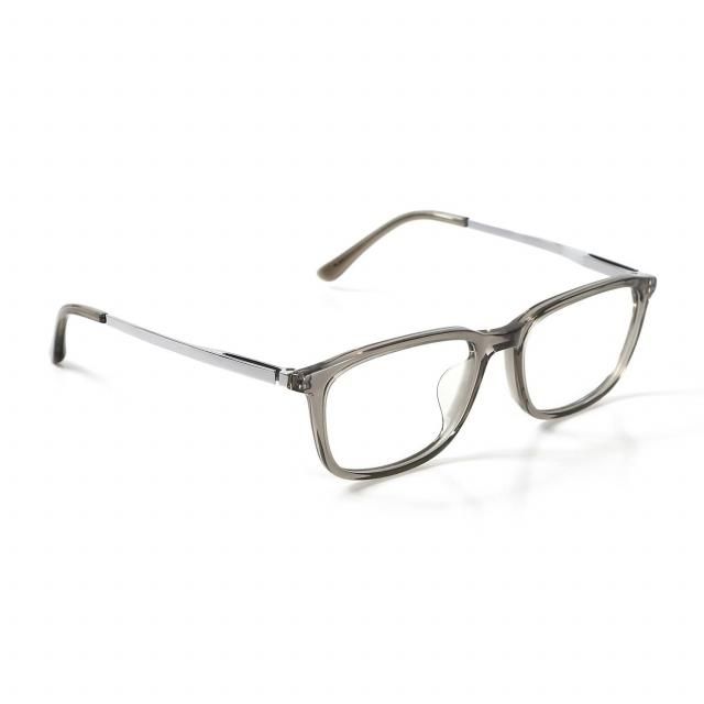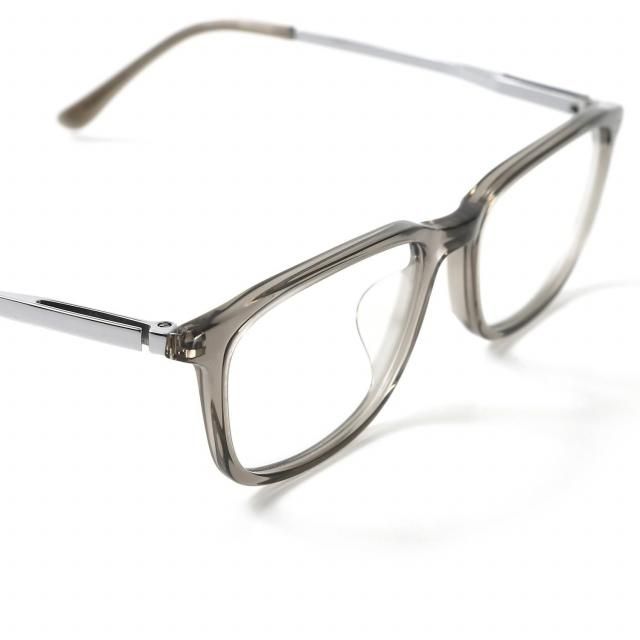 伊達メガネ メンズ ビジネス ビジネスマン ビジネスシーン 仕事 おしゃれ スクエア | やや小さめ〜ふつうサイズ βチタンテンプル×アセテートフロント スモーク×シルバーカラー EVERNEVER