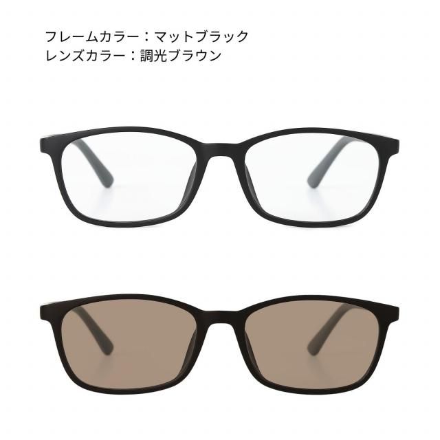 老眼鏡 調光 調光レンズ 調光サングラス メンズ おしゃれ ブラウン 大きいサイズ 大きいフレーム | ふつう〜やや大きめサイズ スクエア マットブラックカラー EVERNEVER AZ Label
