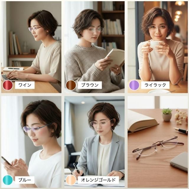 縁無しメガネ 老眼鏡 縁なし レディース ふちなし おすすめ リムレス フレームなし | S・M・Lのフレームサイズ 0.25刻みで選べるレンズ度数 オーバル/ライラックカラー MIDI ミディ