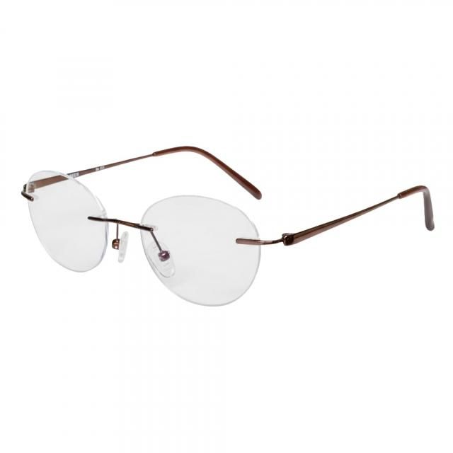 縁無しメガネ 老眼鏡 縁なし レディース ふちなし おすすめ リムレス フレームなし | S・M・Lのフレームサイズ 0.25刻みで選べるレンズ度数 小ぶりボストン/ブラウンカラー MIDI ミディ