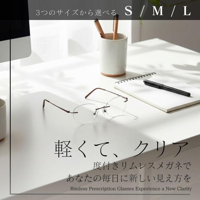 リムレス メガネ 度 あり おしゃれ レディース ふちなしメガネ 度付き 度入り フチなし 縁なし | Mサイズ ふつうサイズ 小ぶりボストン/ブラウンカラー MIDI ミディ