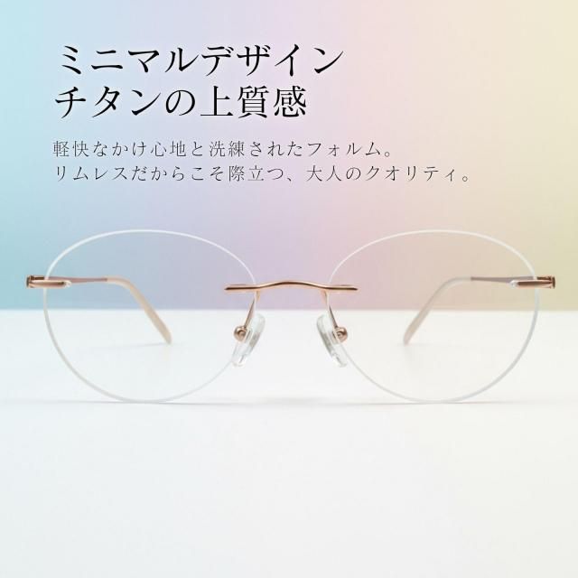 リムレス メガネ 度 あり おしゃれ レディース ふちなしメガネ 度付き 度入り フチなし 縁なし | Lサイズ やや大きめサイズ ボストン/ブルーカラー MIDI ミディ
