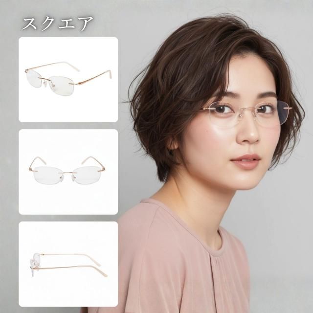 リムレス メガネ 度 あり おしゃれ レディース ふちなしメガネ 度付き 度入り フチなし 縁なし | Sサイズ やや小さめサイズ スクエア/ブラウンカラー MIDI ミディ