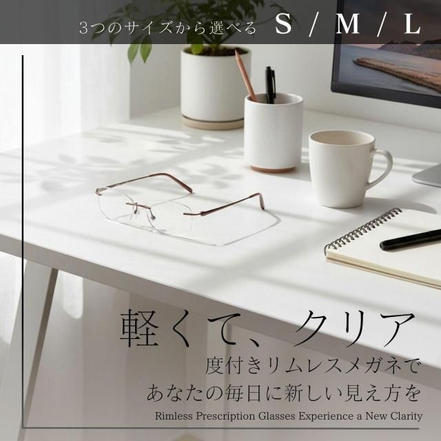 リムレス メガネ 度 あり おしゃれ レディース ふちなしメガネ 度付き 度入り フチなし 縁なし | Lサイズ やや大きめサイズ スクエア/ライラックカラー MIDI ミディ