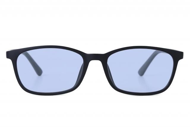 カラーレンズ 度あり メンズ|ブリーズブルー35F 中間ブルー・薄いサングラス仕様・マットブラックフレーム