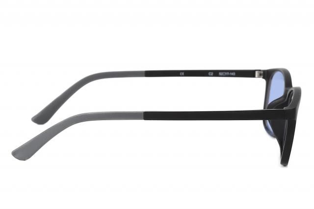 EVERNEVERの遠近両用老眼鏡サングラスは、遠くから手元までなめらかにつながる遠近レンズと、深みのあるブリーズブルー50F(濃いめ)を組み合わせた存在感のあるモデルです。マットブラックフレームの落ち着いた質感に濃いブルーが映え、大人の男性にぴったりのシックな印象に仕上がります。